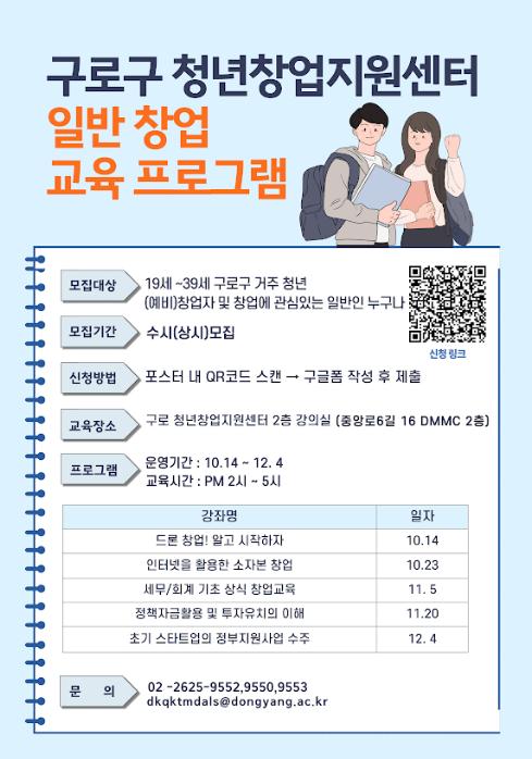 자세한 교육 일정과 프로그램 내용은 구로구청 누리집 또는 구로구 청년창업지원센터(02-2625-9552, 9550, 9553)에서 확인할 수 있다.