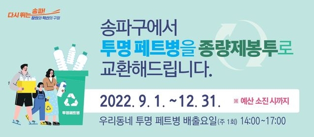 송파구, 투명페트병 종량제봉투로 바꿔가세요!...직접보상제 실시