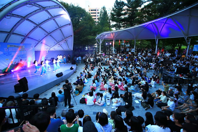 과천시 청소년들이 마련한 야외 공연에 시민들 높은 호응 - 과천시청소년수련관 동아리연합회가 시민 대상 공연 직접 기획 - 11개 동아리 참여해 밴드, 댄스, 보컬, 치어리딩 랩 공연 등 선보여