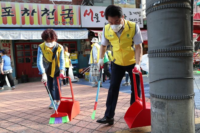 재선에 성공한 박 구청장은 지난 6월부터 7월까지 민선8기 시작과 함께 전 동 순회 대청소를 실시하며, 주민들에게 ‘주민자율청소와 내집ㆍ내점포 앞 쓸기 문화 확산’을 약속한 바 있다.