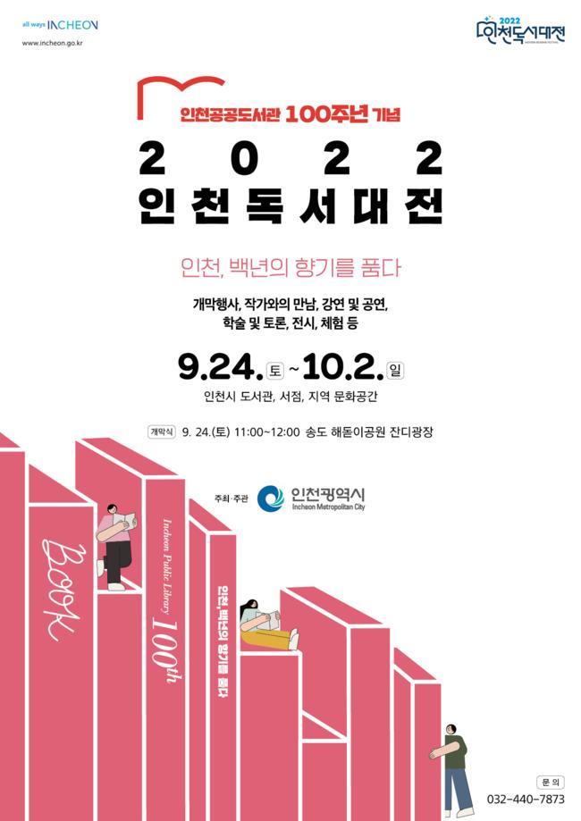 인천광역시는 오는 9월 24일부터 10월 2일까지 9일 간 공공도서관과 작은 도서관, 서점, 지역 문화공간에서 ‘2022 인천 독서대전’을 개최한다고 밝혔다.