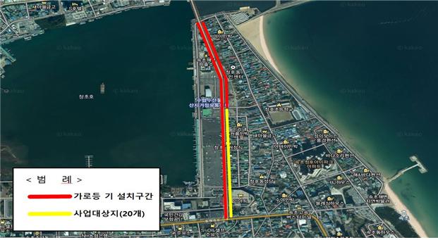 속초시가 관내 도로조명 개선을 위하여 설악금강대교로(이마트~설악대교입구) 가로등 미설치 구간에 가로등을 설치한다.