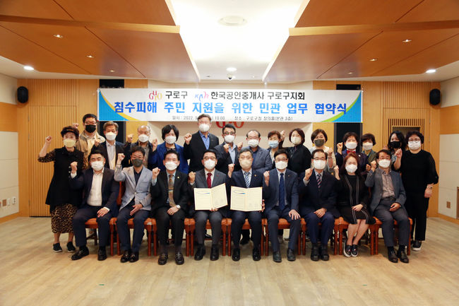 구로구는 28일 오전 10시 구로구청에서 한국공인중개사협회 구로구지회와 ‘침수피해 주민 지원을 위한 민관 업무협약’을 체결했다고 밝혔다.