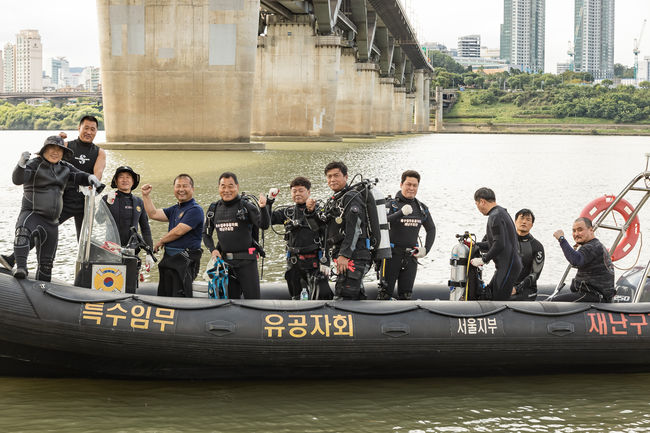 잠수장비를 착용한 잠수요원 10명은 뚝섬유원지를 중심으로 한강 수중에 쌓인 각종 쓰레기와 오염물을 수거하는 작업을 펼쳤다.