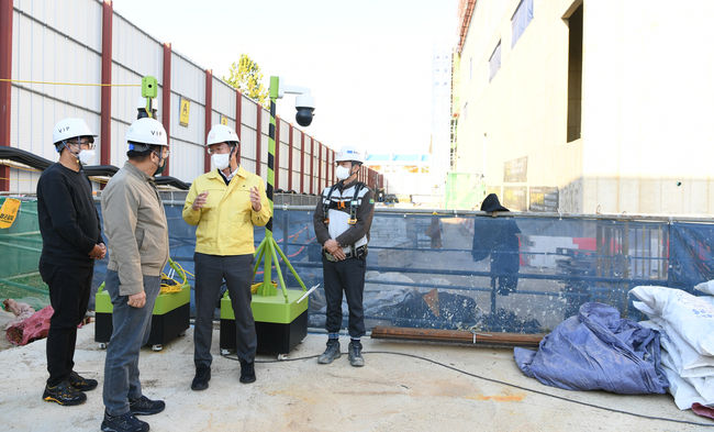 안산카카오데이터센터 신축공사장 긴급안전점검을 하고 있는 이민근 안산시장(제공=안산시)