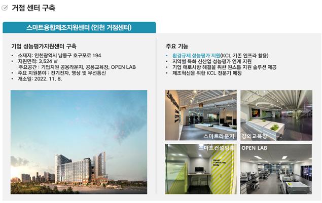 지원센터는 전국 3개 권역의 거점센터로, 남동구 호구포역 인근에 위치한 지식산업센터 내 지하1층과 지상9층에 3,524㎡(약 1,066평) 규모로 시험실과 강의·교육장, 사무실, 공용지원공간(라운지, 교육장, 회의실) 등을 갖췄다.