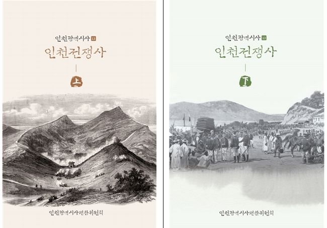 `인천전쟁사` 상권 표지 (왼쪽) `인천전쟁사` 하권 표지 (오른쪽)