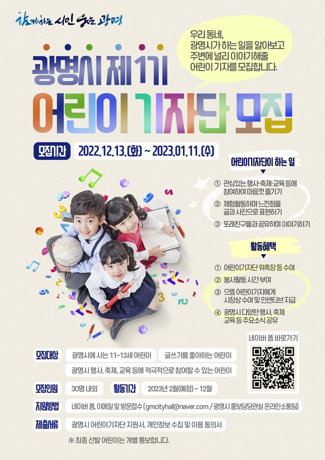 광명시, 제1기 어린이 기자단 모집 홍보문