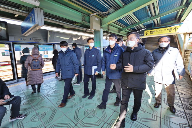 이후 역사 내 주요 혼잡구간인 1·7호선 환승 통로와 현재 진행하고 있는 7호선 출입구 확충사업 현장을 방문해 안전대책의 지속적인 시행과 차질 없는 공사추진을 당부했다.