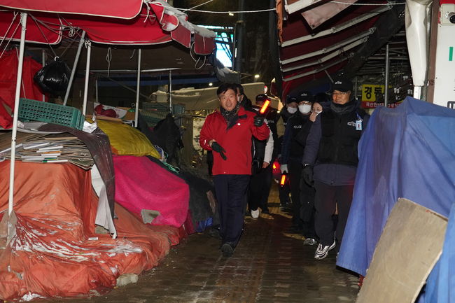 이필형 동대문구청장이 노점 밀집지역을 순찰하고 있다.