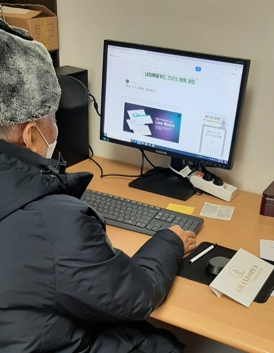 경로당 어르신들이 기증받은 PC를 사용하는 모습