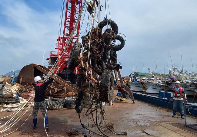 해수부, 항만에 침적된 폐타이어 일제 수거 추진 - 금년 실태조사 및 부산항 시범사업 후 23년 전국 확대키로