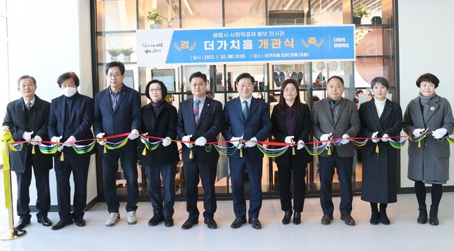 광명시는 30일 광명GIDC B동 28층에서 사회적경제 홍보 전시관 ‘더가치홀’ 개관식을 가졌다. 이날 행사는 박승원 광명시장과 시의원, 사회적경제 기업 관계자 등 70여 명이 참석한 가운데 테이프커팅, 경과보고, 축사, 시설라운딩 순으로 진행됐다고 밝혔다.