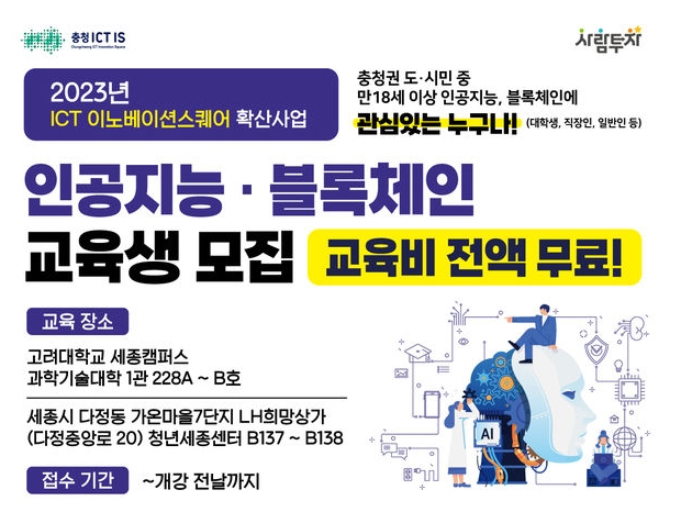 인공지능·블록체인 실무형 디지털 인재 양성 - 세종시·세종TP·고려대 협력, 2023년도 교육과정 개설·운영 - 인공지능, 블록체인, 데이터 등 소프트웨어 분야별 교육