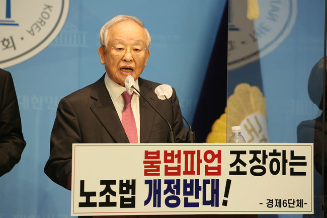 경제6단체가 "노조법 개정안이 통과되면 우리나라 법체계의 근간이 흔들리고 노사관계는 돌이킬 수 없는 파탄국면에 이르게 된다"며 "절박한 심정으로 이 자리에 모였고, 노동조합법 개정안에 대한 심의 중단을 강력히 요청한다"고 목소리를 높였다.
