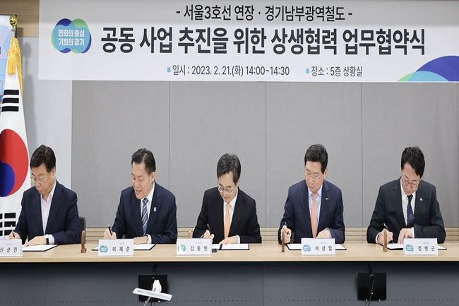 협약서에는 경기도와 용인 등 4개 시가 서울3호선 연장을 성공적으로 진행하기 위해 교통여건 개선 및 대규모 개발사업에 선제적으로 대응하는 최적의 노선(안)을 마련하고, 이를 제5차 국가철도망 구축계획 등 상위계획에 반영하기 위해 공동 대응하자는 내용이 담겼다.