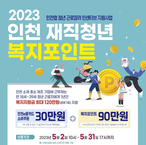 인천광역시는 인천 재직청년들의 삶의 질 향상 및 근속 유도를 위한‘인천 재직청년 복지포인트’사업 참여자를 오는 5월 31일까지 선착순 모집한다고 밝혔다.