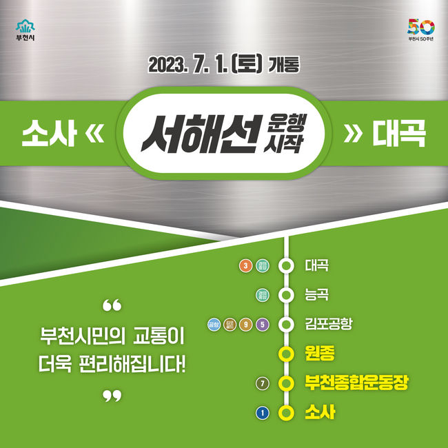 조용익 부천시장은 “장기간 공사와 계속된 개통 지연에 따른 불편을 묵묵히 인내하면서 적극적으로 협조해주신 시민 여러분께 감사를 드린다”며 “앞으로 계획하고 있는 철도사업도 시민들의 기대에 부응할 수 있도록 최선을 다하겠다”고 말했다.