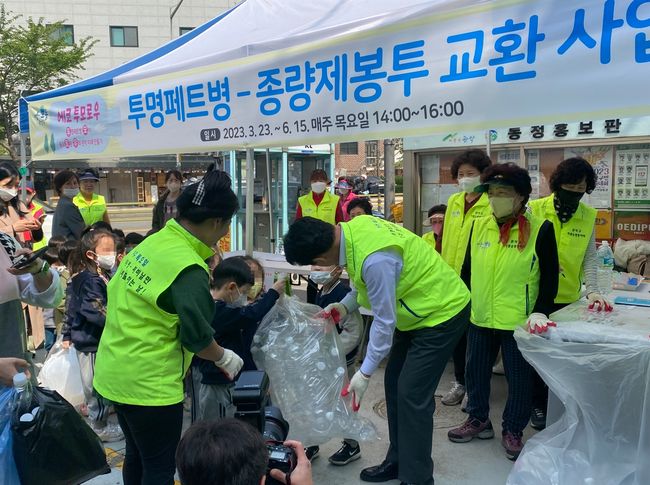 올해 구는 지난 2월 각 동별 자원순환동아리를 재정비해 3월 말부터 매주 목요일 전 동 주민센터에서 투명페트병 유가보상제 사업을 추진하고 있다.