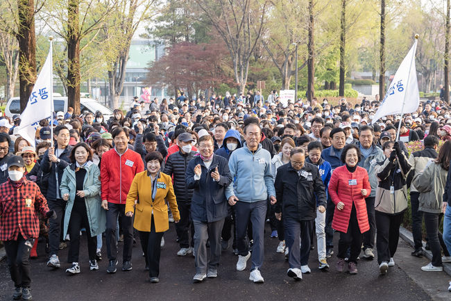 김경호 구청장(오른쪽 5번째, 지난 4월 봄꽃길 걷기대회에서 구민과 함께한 모습)