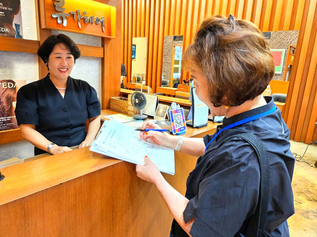 양천구 명예공중위생감시원이 이미용업소에서 공중위생서비스평가중인 모습