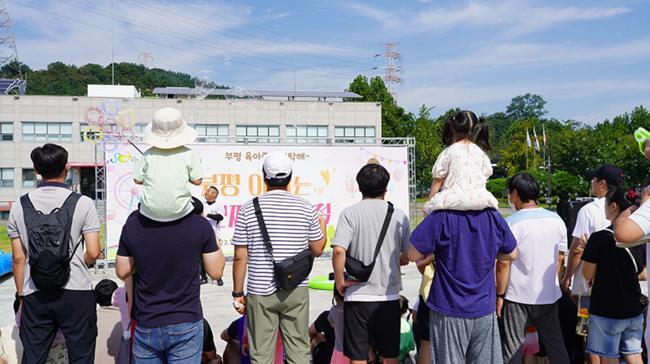 부평육아종합지원센터가 지난해 9월 마련한 `부평 아빠는 진짜 엄지척` 행사에 참가자들이 공연을 관람하고 있다.