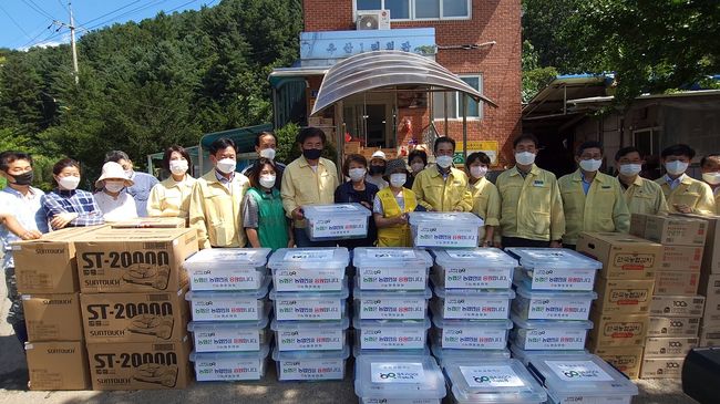 이날 농협중앙회는 큰 피해를 본 우산리 주민을 위해 먹거리 상품 중심으로 구성된 긴급 구호 물품을 전달했다.