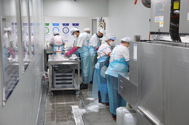 세척 공정은 애벌 세척, 초음파 세척, 고온·고압 세척, 열풍 고온 소독, 오염검사, 포장 총 6단계를 거치며 세척 용기의 특성에 따라 두 개의 세척라인으로 구분해 운영된다.