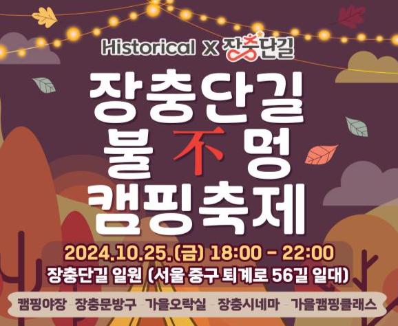 서울 중구가 10월 25일 금요일 18시부터 22시까지 장충단길에서 ‘장충 불(不)멍 캠핑’을 개최한다.