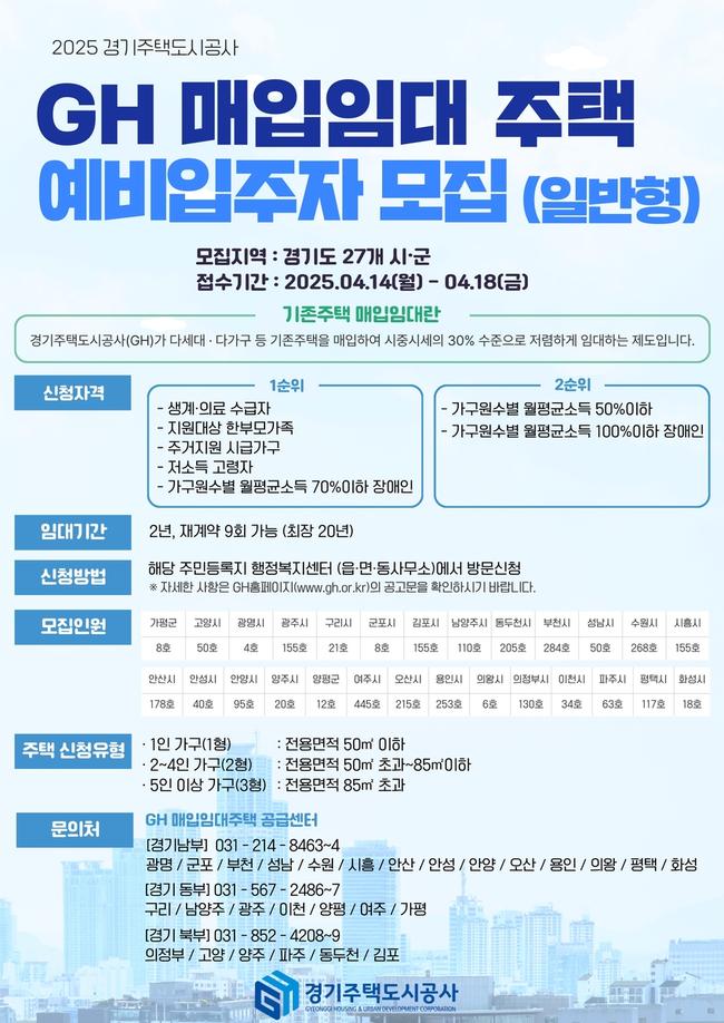 GH, 경기도 내 27개 시·군 매입임대주택 예비입주자 모집