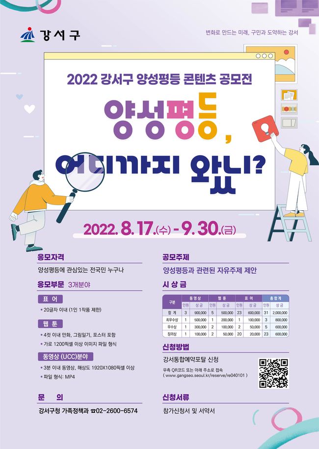 구는 양성평등을 주제로 오는 9월 30일까지 ‘2022 양성평등 콘텐츠 공모전’을 진행한다고 밝혔다.