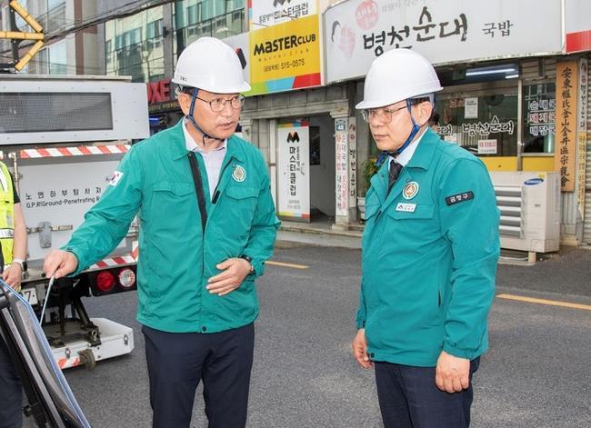 현장을 둘러본 윤일현 구청장은 "지반 침하는 구민의 생명과 안전을 위협하는 중대한 재난 요소"라며 "반복적인 사고를 막기 위해서는 종합적이고 체계적인 점검과 정비가 반드시 필요하다"라고 강조했다.