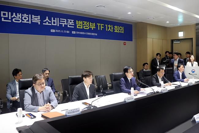 행정안전부는 6월 23일 ‘민생회복 소비쿠폰 범정부 TF(태스크포스)’ 1차 회의를 개최하고, 사업의 전반적인 운영 방향과 각 기관의 역할을 논의했다고 밝혔다.