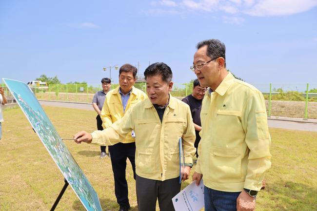 명현관 해남군수, 짧은 장마 인한 폭염 · 가뭄 대책 현장점검